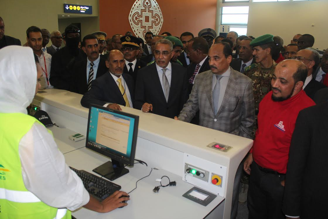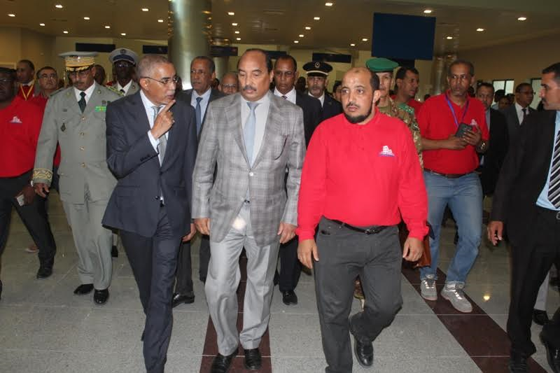 ولدى سلم الطائرة الرئاسية التي حطت بالمطار الجديد كان في استقبال رئيس الجمهورية معالي الوزير الأول السيد يحيى ولد حدامين، وزير التجهيز والنقل السيد محمد ولد خونه، والرئيس المدير العام لمجموعة ASMLGROUP أحمد سالك محمد الأمين ابّوه.