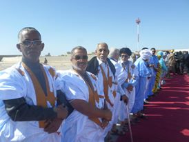 الرئيس الذي وصل إلى نواذيبو على متن طائرة خاصة، كان في استقباله الوزير الأول يحيى ولد حدمين ورئيس الجمعية الوطنية وعدد من أعضاء الحكومة وقائد الأركان العامة للجيوش وقائد الأركان الخاصة لرئيس الجمهورية ورئيس منطقة نواذيبو الحرة.وحضور لافت لحزب الإتحاد من اجل الجمهورية وجمع غفيير من ساكنة المدينة وتستعد مدينة نواذيبو لتنظيم استعراض عسكري بعد حفل رفع العلم، وذلك ضمن احتفالات تشهدها للمرة الأولى منذ الاستقلال.