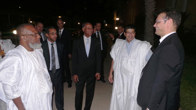 وبعيد وصوله إلى العاصمة نواكشوط استقبل الأمين العام لحزب الاستقلال المغربي الأستاذ / حميد اشباط / والوفد المرافق له من لدن رئيس حزب الاتحاد الأستاذ / سيدي محمد ولد محم / في مقر إقامة الوفد بفندق مونوتيل صحبة الأمين العام للحزب السيد / عمر ولد معط الله / حيث أقام على شرفهم حفل عشاء.