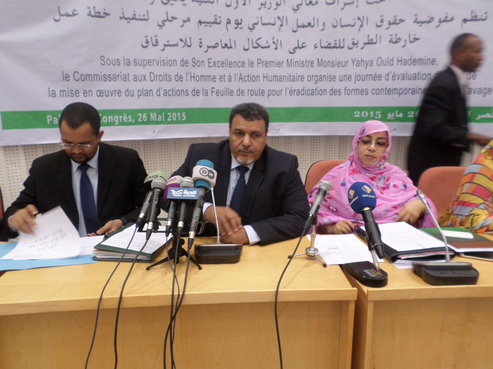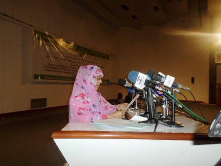 مفوضية حقوق الانسان والعمل الإنساني عائشة منت محيحم في كلمة لها ايضا قالت بأن هذه التظاهرة تهدف إلي تقييم ماأنجز عن طريق خطة عمل خارطة الطريق لمكافحة الاسترقاق .