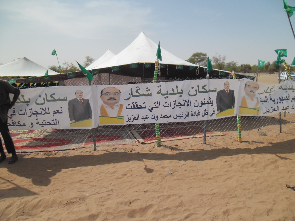 تميز الاستقبال الذي خص به سكان بلدية شكار في ولاية لبراكنه رئيس الجمهورية السيد محمد ولد عبد العزيز هذا المساء بحفاوة ونظام وبهجة لم تشهدها الولاية في جميع محطات الزيارة.