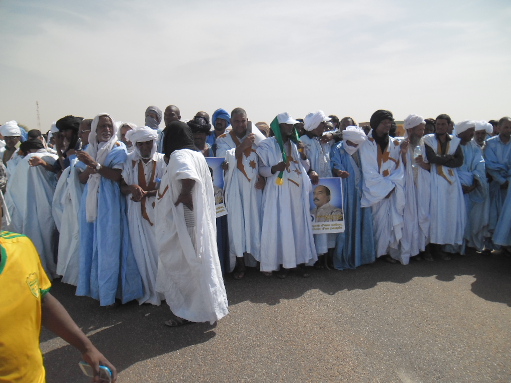 1 ـ أقيم مهبط الطائرة الرئاسية في موقع بعيد نسبيا خارج مدينة ألاك؛ في إجراء اتخذته السلطات الإدارية بقيادة والي الولاية؛ وهو الإجراء الذي اعتبره العديد من المراقبين الحضور مخالفا للقواعد والتدابير الأمنية الضرورية لمثل هذه المناسبات الرسمية رفيعة المستوى.. وكان الاستقبال لافتا إلى حد كبير من قبل جماهير بلدية شكار؛ من حيث حجم الحشود الجماهيرية ودقة تنظيمها في صفوف متراصة على طول جانبي الطريق الذي مر به الموكب الرئاسي؛ في مشهد لوحظ أنه تكرر مع سكان بلدية أغشوركيت من خلال مبادرة "أوفياء" بقيادة الإداري المدير العام لشركة "سنيم"، محمد عبد الله ولد أوداعه، والتي ظهر شعارها عبر اللافتات والكتابات على الجمال، وصور رئيس الجمهورية.